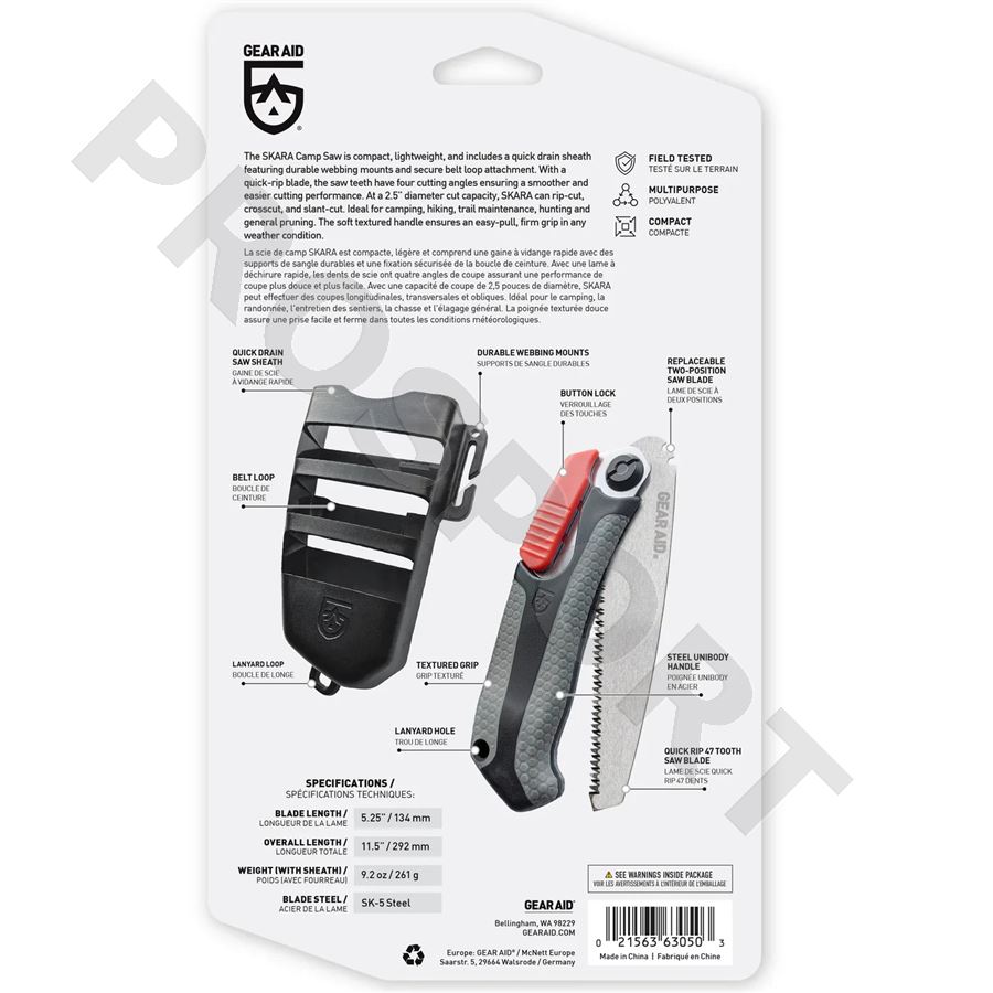 Kempingová pilka SKARA je robustní a přitom kompaktní. Je lehká a její součástí je i rychloupínací pouzdro pro bezpečné upevnění na opasek. Čepel pily má zuby se čtyřmi úhly řezu pro docílení hladkého povrchu řezné plochy. Umožňuje hladké, snadné a rychlé řezání. Je ideální pro kempování, turistiku, údržbu stezek, lov i běžné prořezávání. Měkká texturovaná rukojeť zajišťuje snadné vytahování a pevný úchop za každého počasí.
