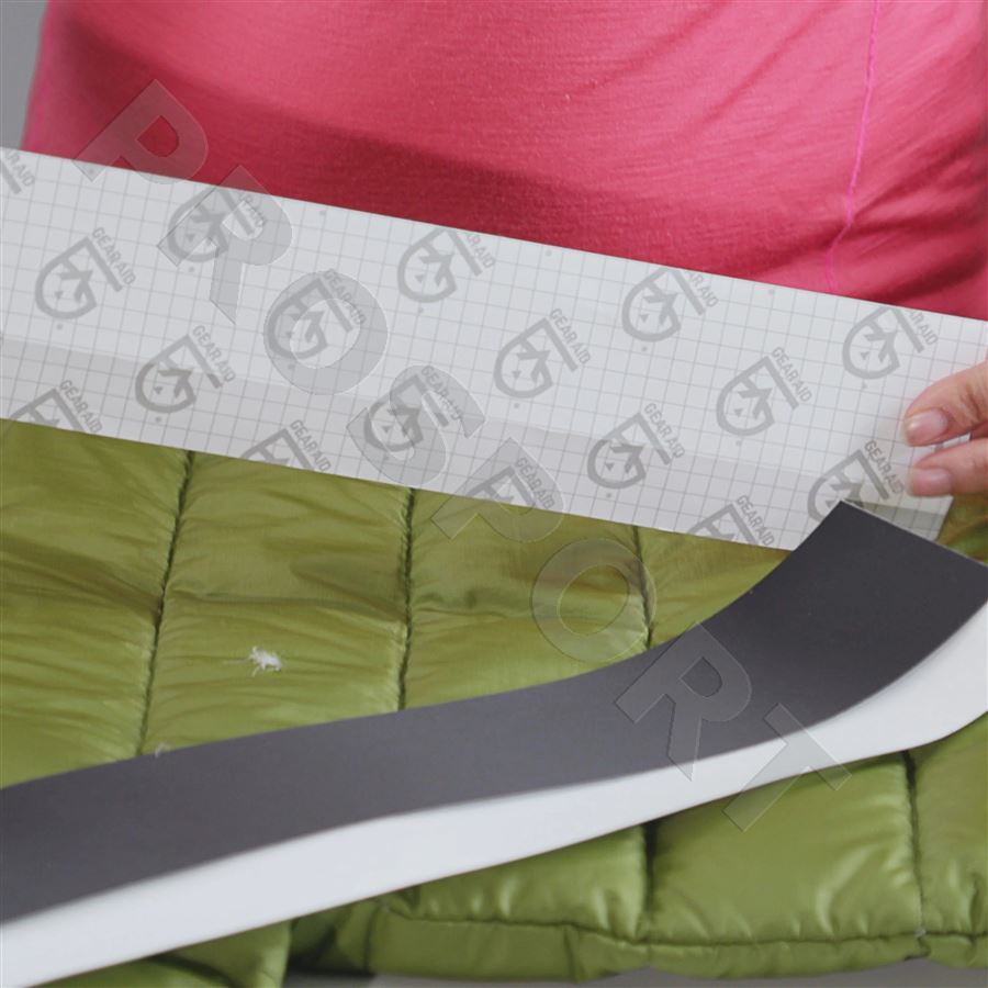 Návod k použití: Z pásky vystřihneme záplatu tak, aby opravované místo přesahovala v jakémkoli směru minimálně o 10 mm. Opravovanou tkaninu vyrovnáme na rovné podložce. Povrch opravované tkaniny by měl být suchý a čistý. Z vystřižené záplaty odstraníme krycí folii a záplatu přitiskneme lepící vrstvou na opravovanou tkaninu. Záplatu uhladíme. Plné pevnosti přilepení záplaty je dosaženo po 24 hodinách, ovšem zalepenou tkaninu je možné používat ihned po opravě.